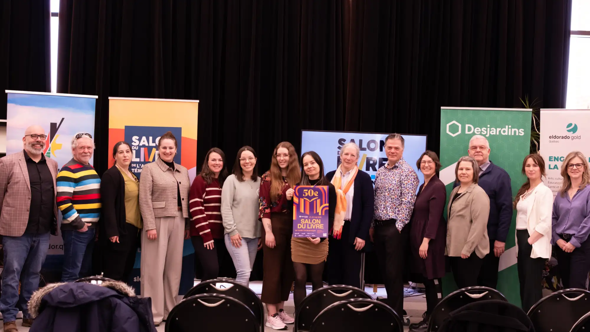 Pour souligner le 50e anniversaire du Salon du livre régional, la conception de l’affiche officielle a été confiée à l’artiste Olivier Ballou qui s’est inspirée des années 70. « Son approche visuelle met en valeur un design moderne, des formes géométriques marquées une typographie affirmée et une palette de couleurs contrastantes évoquant l’effervescence de 1976, a-t-on décrit dans un communiqué. Cette signature graphique rappelle notamment l’imaginaire visuel des Jeux olympiques de 1976 de Montréal, des affiches culturelles de l’époque et de la signalétique emblématique de cette époque.»